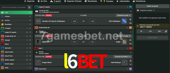 O l6bet oferece uma grande seleção de opções de apostas em e-sports com probabilidades competitivas